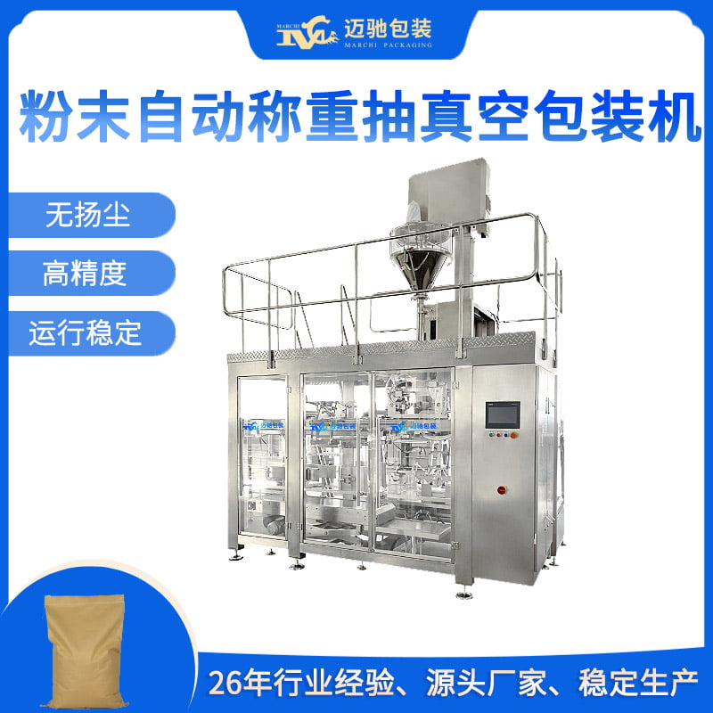 迈驰是一家粉末抽真空包装机、超细自动粉末抽真空包装机厂家,可根据客户不同粉料特性定制一对一方案,可抽真空定型、可定制脱气装置,高精度计量、无尘化包装。26年包装行业经验,助力生产企业稳定生产,提高产能。